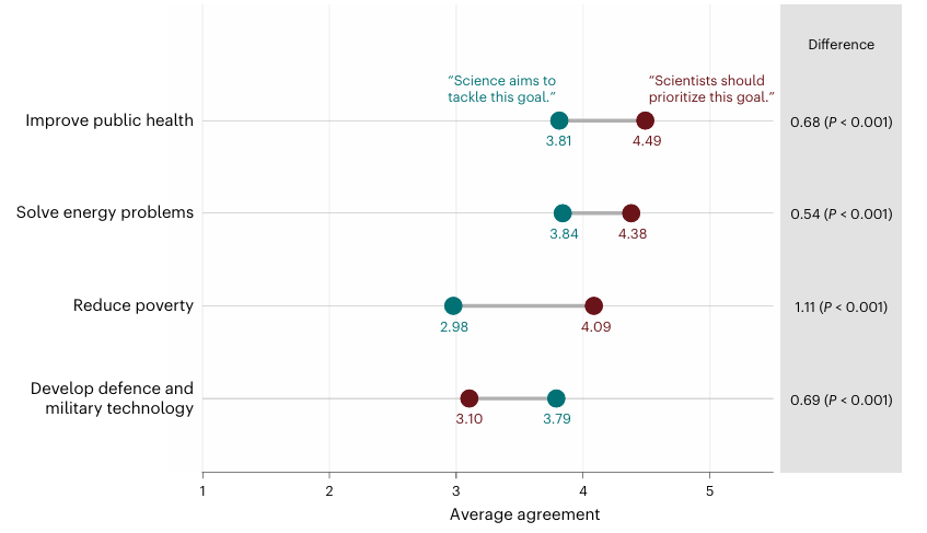 図2:社会で認識されている研究優先順位と望ましい研究優先順位(V.Cologna 2025)